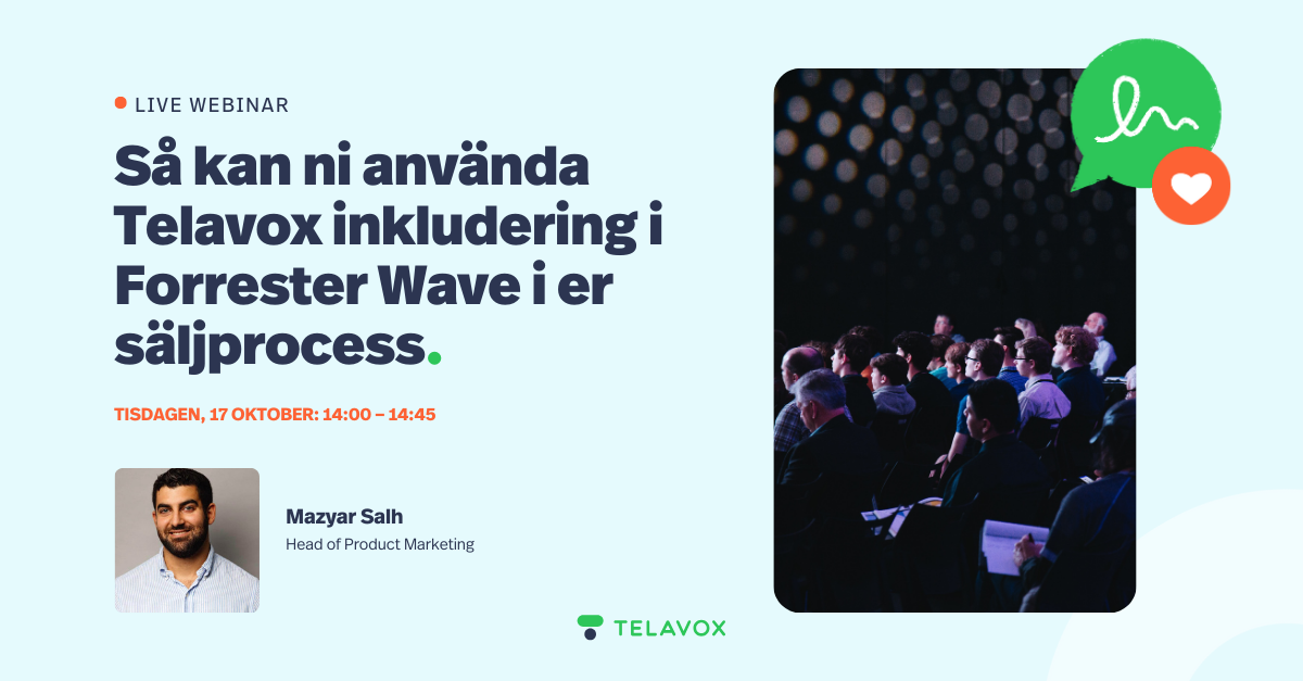 Det har nu blivit dags för oss att bjuda in er till vårt webbinarium där vi kommer dela våra insikter och kunskaper om hur Telavox inkludering i The Forrester Wave kan förstärka ert erbjudande och komma med handfasta tips och material ni kan använda er av i era säljprocesser. För att läsa vårt tidigare inlägg om Telavox i The Forrester Wave, se här.