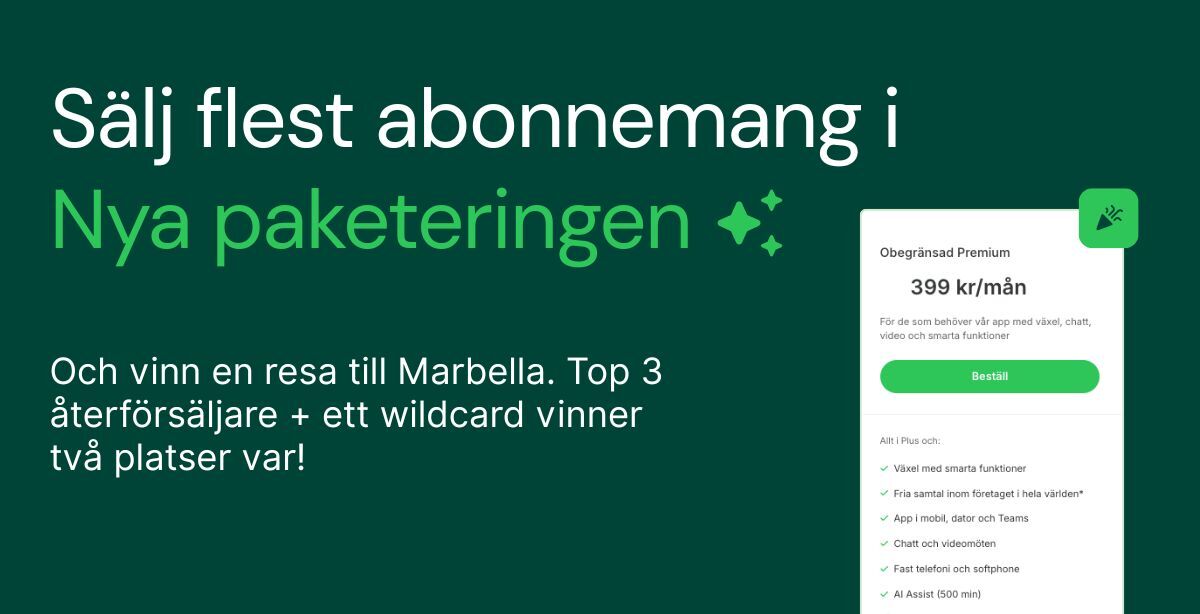 Varför satsa på den nya paketeringen? Den erbjuder ett komplett och framtidssäkert helhetserbjudande, med surf och växeltjänster inkluderade, och dessutom AI Assist i Premium- och Max-abonnemangen – utan extra kostnad. Ett attraktivt paket som gör det enklare än någonsin att sälja.