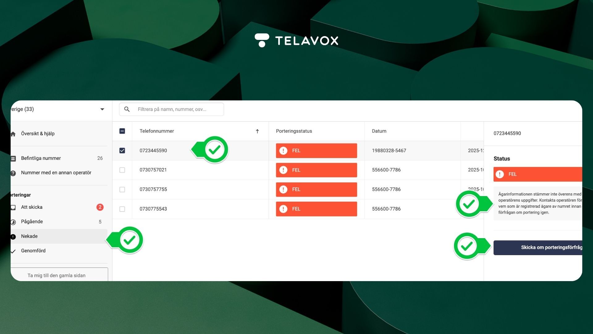 2. Se felmeddelande skicka om nekade porteringar 🕵️